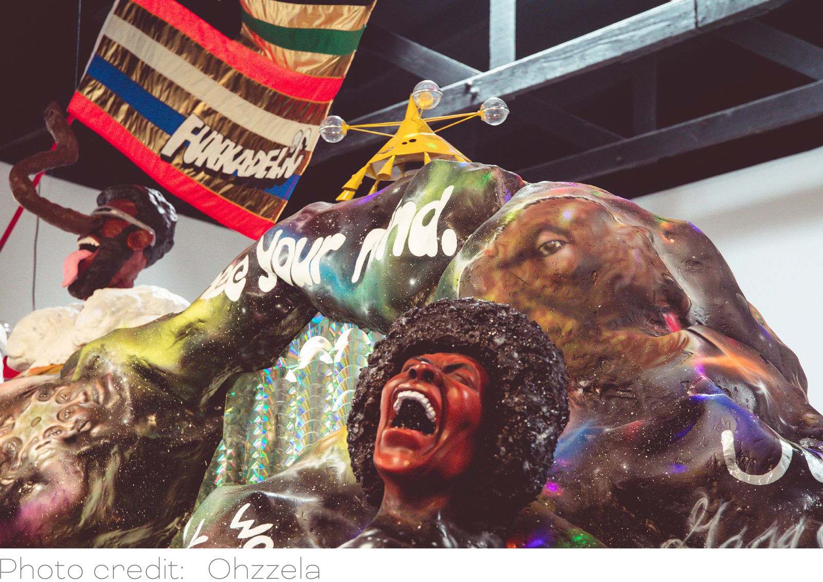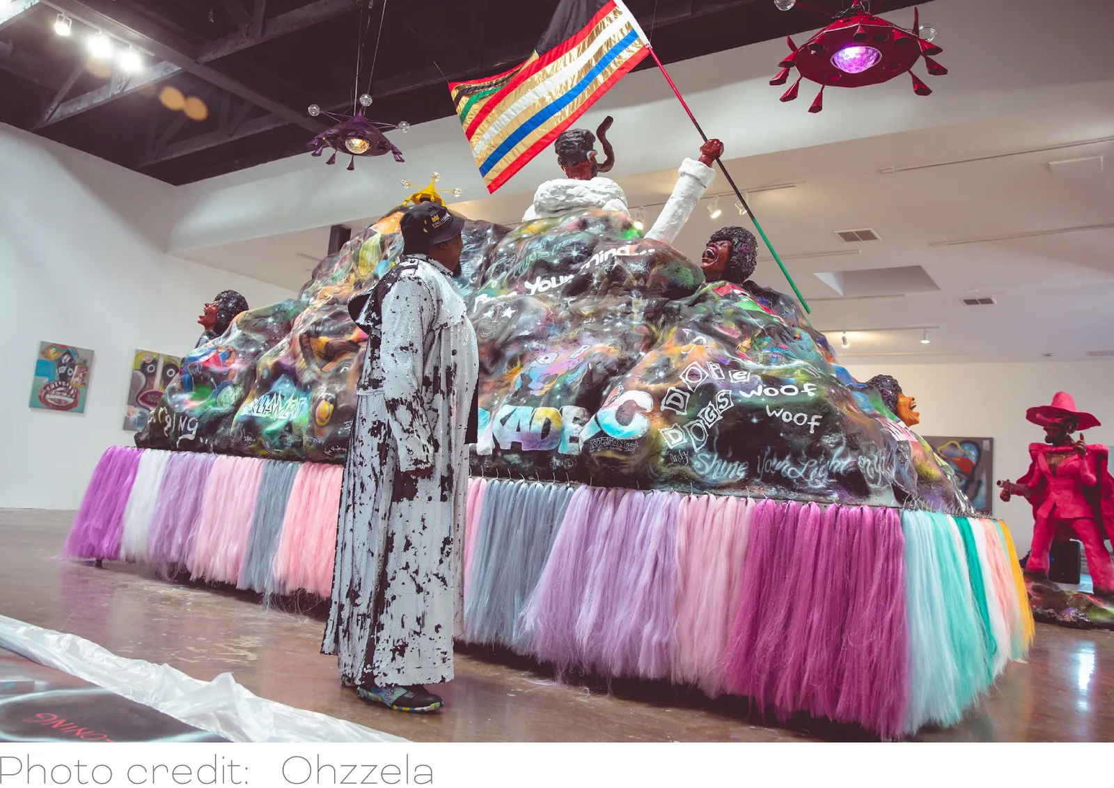 Lauren Halsey is collaborating on the exhibition by creating a sculptural stage inspired by George Clinton’s music. The work is a homage to Clinton’s influence on her artistic vision.