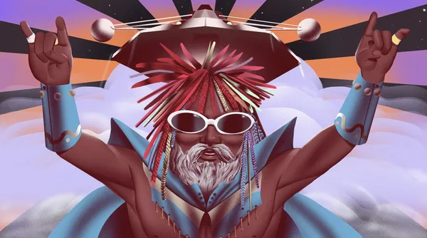 George Clinton and Overton Loyd, Delic Mushroom Dog on a Spaceship, c 2022